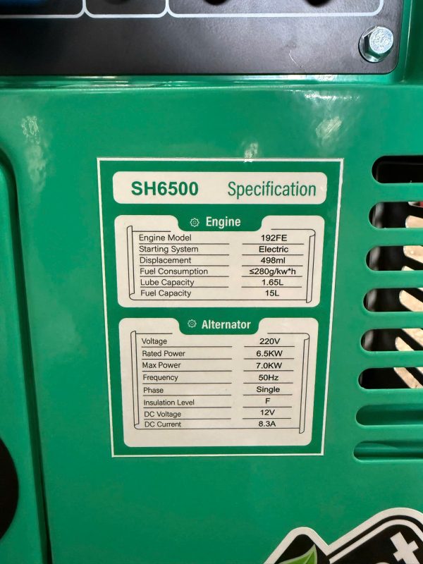 📊 Thông Số Kỹ Thuật Máy Phát Điện Dầu Chống Ồn SH-6500