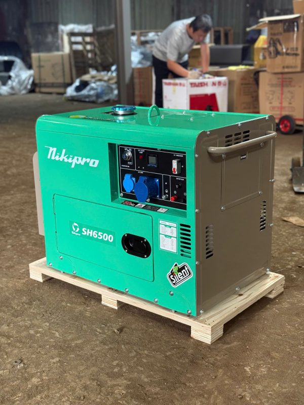 Máy phát điện dầu chống ồn NikiPro SH-6500 là dòng máy phát điện diesel có vỏ cách âm, công suất lớn 6.5kW, đáp ứng tốt nhu cầu sử dụng điện cho hộ gia đình, cửa hàng kinh doanh, kho xưởng, công trình dân dụng và các khu vực yêu cầu độ ồn thấp.